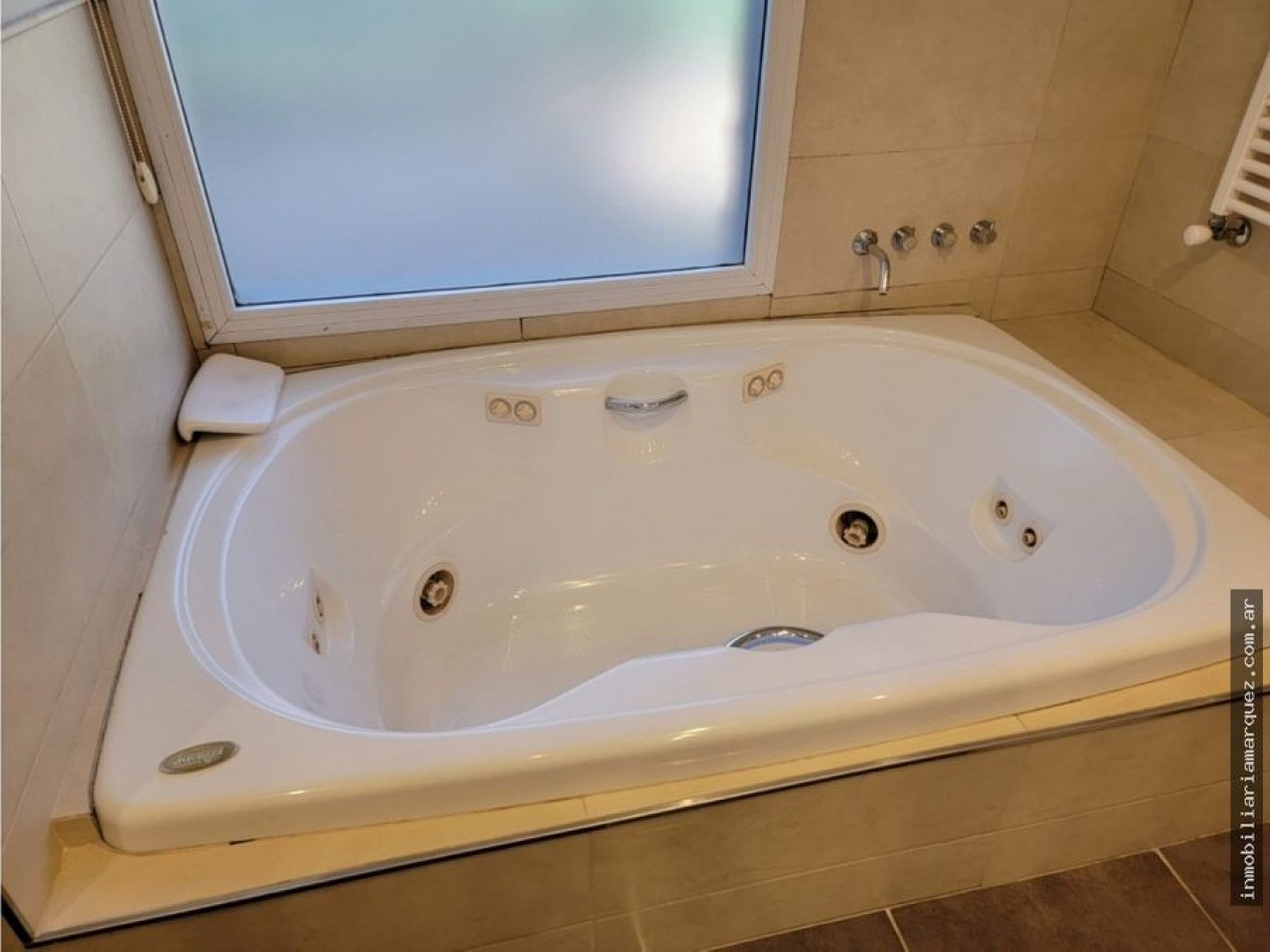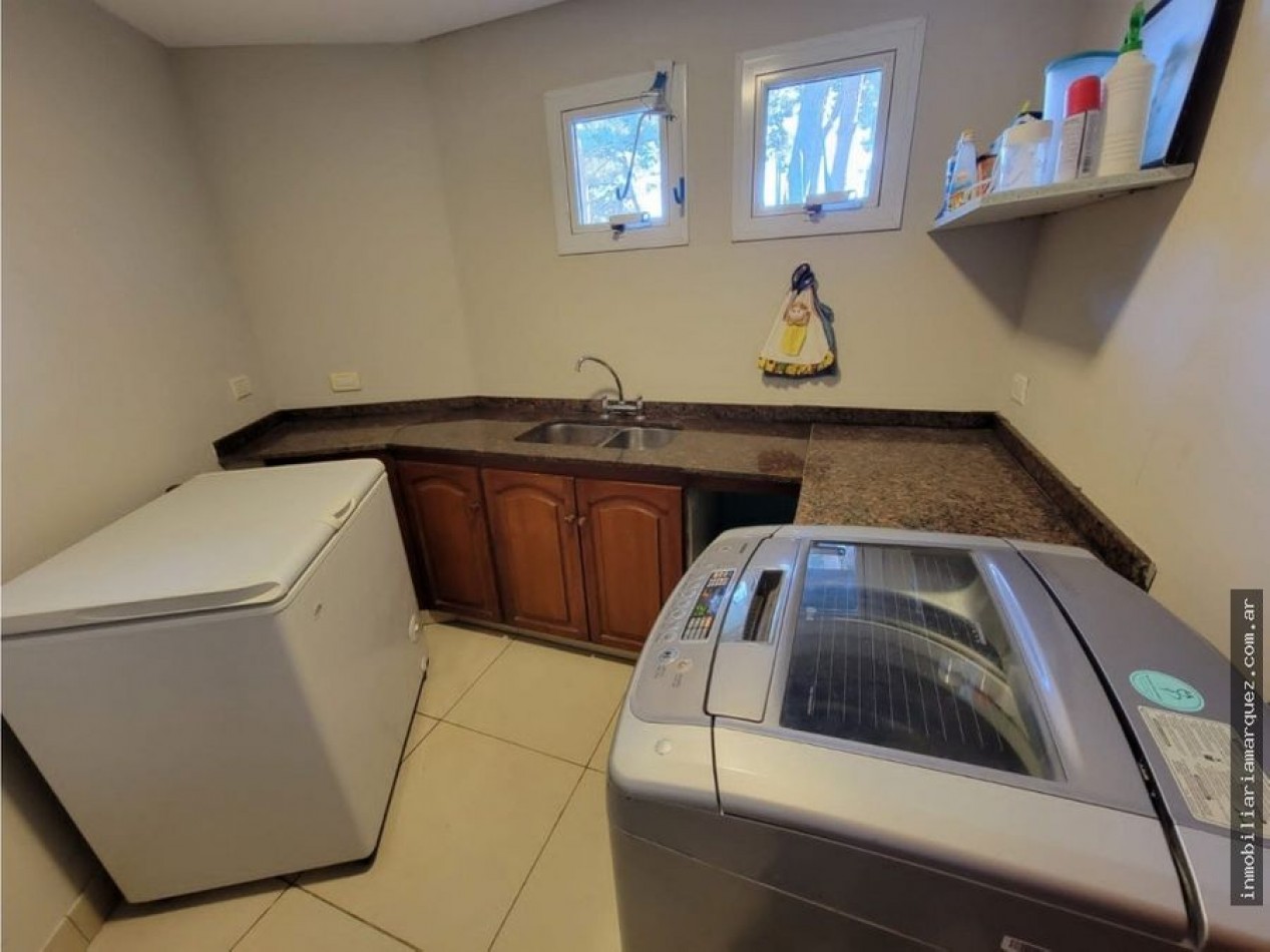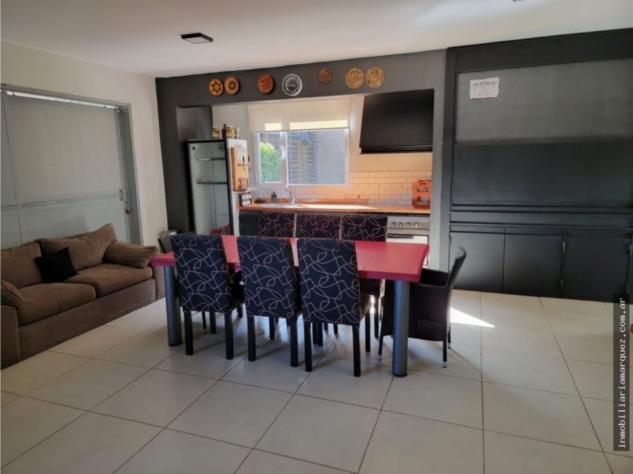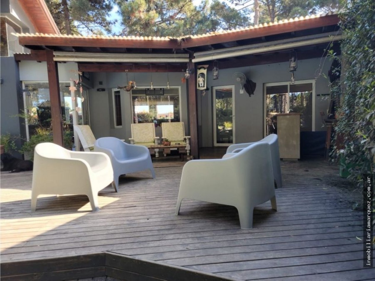 Alquiler Temporada 2023 Living-Comedor de 8 X 5, Cocina separada con comedor diario, Toilette de recepción, 4 Dormitorios el principal en suite con hidromasaje,2 baños, Lavadero, Garage doble con portón.- Parrilla cubierta con cocina 6 hornallas, heladera con dos choperas.- Parrilla exterior Galería con parrilla y deck con piscina, Jardin y juegos para los chicos Hermoso estanque con peces Cerco perimetral completo Servicios; alarma perimetral - Wi-Fi - Cable Direc Tv -Teléfono
