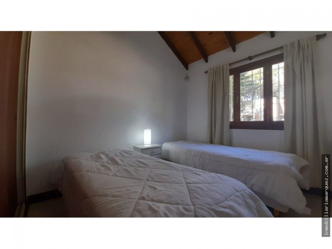 Temporada 2022/23 Enero ALQUILADA Hermoso Chalet en una sola planta zona rincon de Tridente consta de 3 dormitorios, 2 baños 1 en suite, living comedor, cocina, parrilla.- Servicios de Alarma y Wifi Cargos no incluidos en el valor locativo: - Comisión inmobiliaria: 10% - Cargos fijos adicionales por administración, gestión y limpieza final del inmueble $25.000.- - Carga DirecTV Prepago por cuenta del inquilino. - En todos los casos se requiere al Locatario un depósito en garantía en efectivo del 30% del valor del alquiler que debe ser entregado al momento de la firma del Contrato de Locación, el mismo se reintegra al egreso una vez constatado el funcionamiento y buen estado de la propiedad. - Cargos fijos por consumos de luz, agua corriente, se encuentran incluidos en el precio del alquiler, salvo que se indique lo contrario. - El alquiler de la propiedad no incluye el servicio de ropa blanca, ni servicio de limpieza diaria. - Todos estos cargos se abonarán al momento de la firma del Contrato de Locación. Prohibiciones: - No se aceptan grupos de jóvenes. - No se aceptan mascotas.