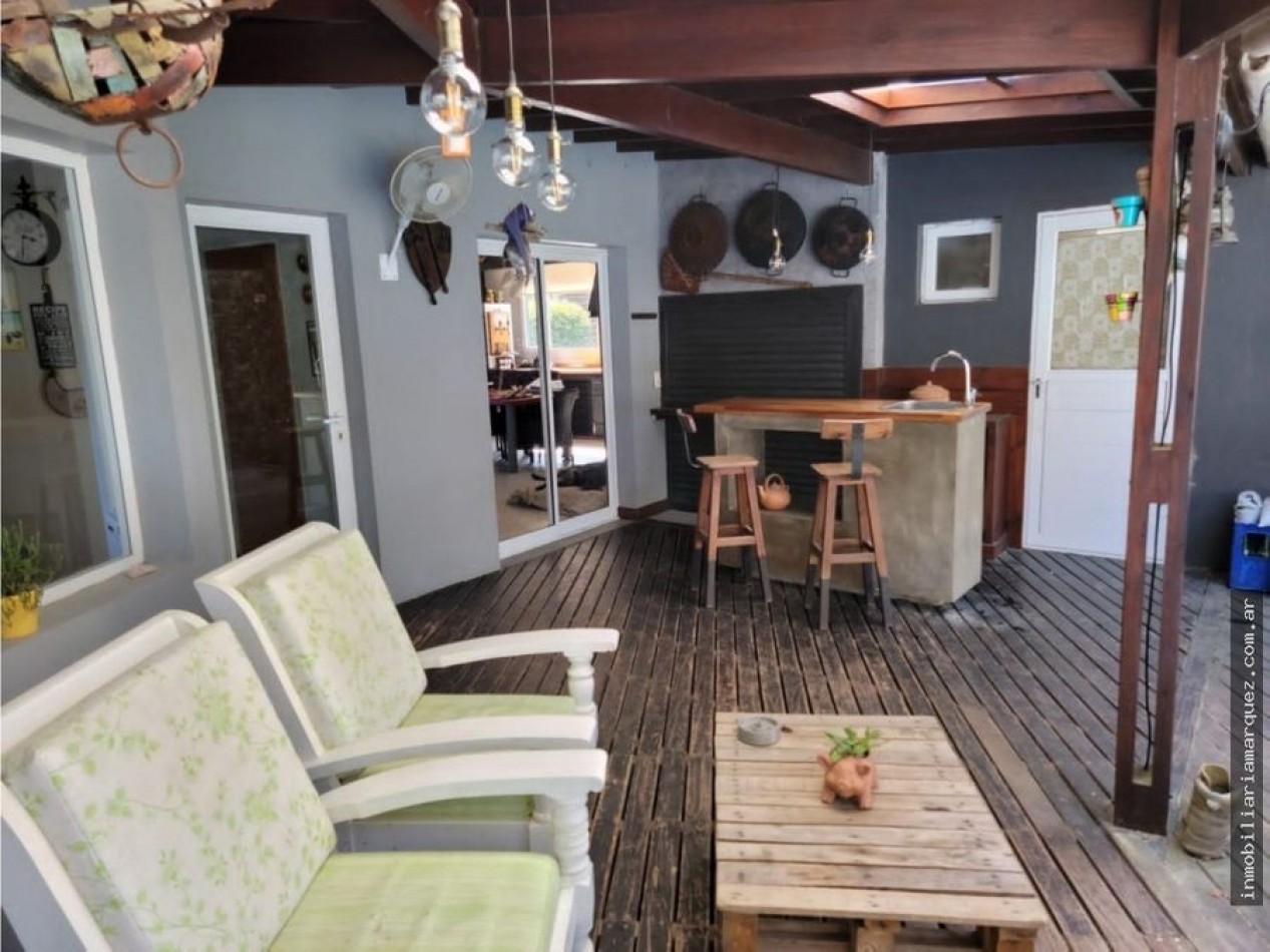 Alquiler Temporada 2023 Living-Comedor de 8 X 5, Cocina separada con comedor diario, Toilette de recepción, 4 Dormitorios el principal en suite con hidromasaje,2 baños, Lavadero, Garage doble con portón.- Parrilla cubierta con cocina 6 hornallas, heladera con dos choperas.- Parrilla exterior Galería con parrilla y deck con piscina, Jardin y juegos para los chicos Hermoso estanque con peces Cerco perimetral completo Servicios; alarma perimetral - Wi-Fi - Cable Direc Tv -Teléfono