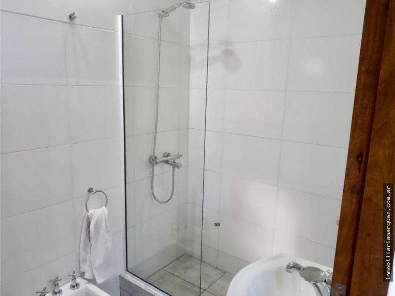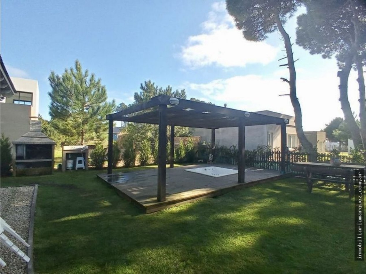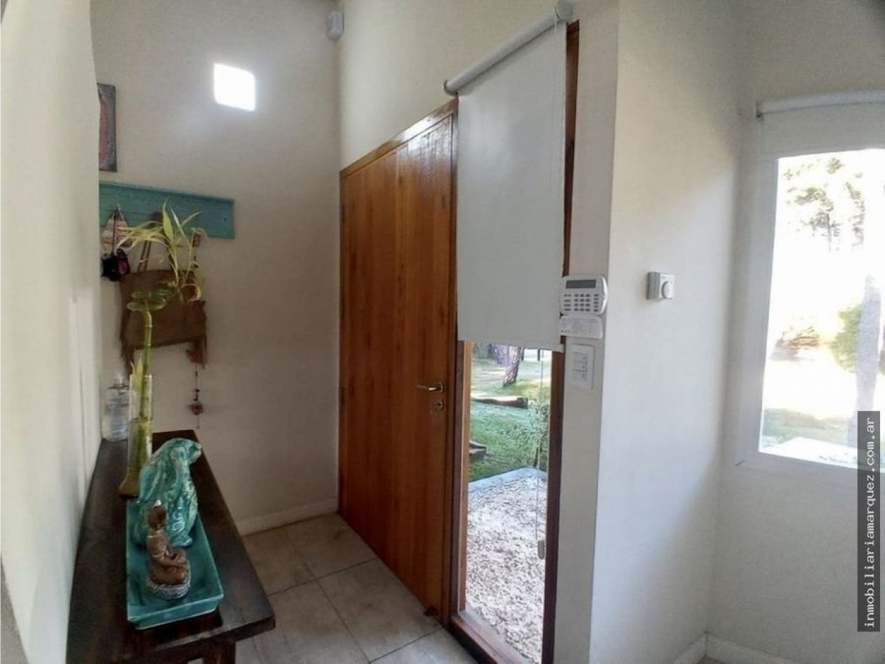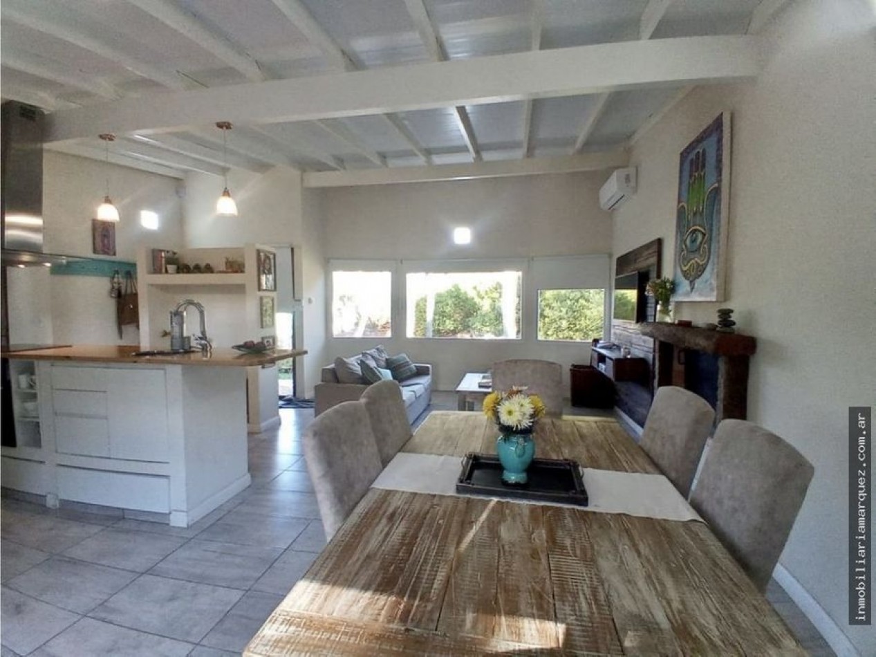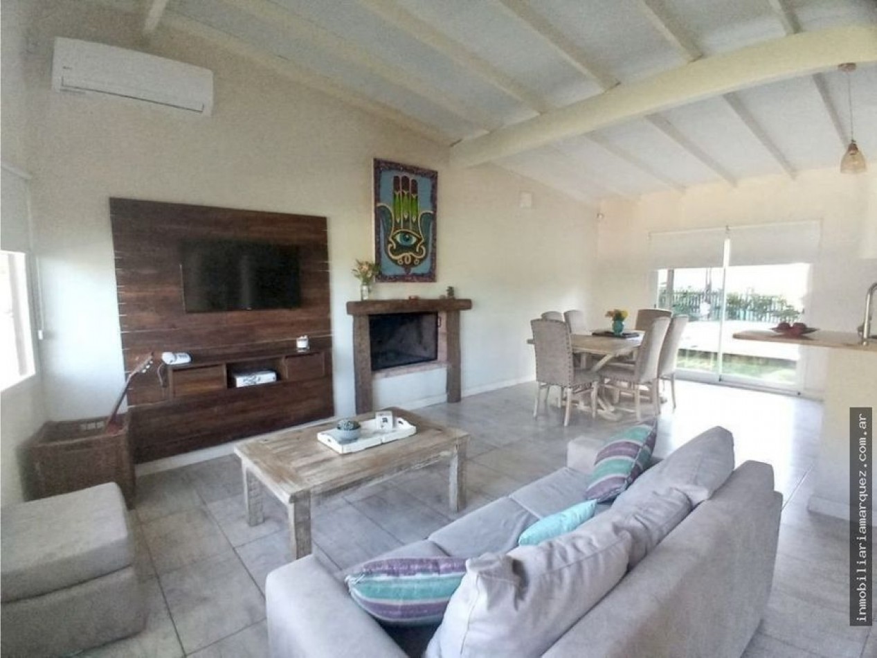 Casa el barrio Nayades sobre un lote de 690 mts con una construcción de 100 mt2 con el sistema Steel Framing ( construcción en seco ) Aberturas de aluminio con DVH Pisos de porchelanato Cocina a inducción - horno eléctrico - Heladera inverter Cocina comedor integrada Hogar a leña - aire acondicionado 1 dormitorios con baño en suite 2 dormitorios 2 baños completos Sector lavadero completo Parque en la parte trasera con orientación norte con cerco vivo y alambre Parrilla Riego Automatizado Deck con jacuzzi Cámara de seguridad Alarma perimetral Amplio sector de ingreso arbolado Cargos no incluidos en el valor locativo: - Comisión inmobiliaria: 10% - Cargos fijos adicionales por administración, gestión y limpieza final del inmueble $30.000.- - Carga DirecTV Prepago por cuenta del inquilino si correspondiere - En todos los casos se requiere al Locatario un depósito en garantía en efectivo del 30% del valor del alquiler que debe ser entregado al momento de la firma del Contrato de Locación, el mismo se reintegra al egreso una vez constatado el funcionamiento y buen estado de la propiedad. - Cargos fijos por consumos de luz, agua corriente, se encuentran incluidos en el precio del alquiler, salvo que se indique lo contrario. - El alquiler de la propiedad no incluye el servicio de ropa blanca, ni servicio de limpieza diaria. - Todos estos cargos se abonarán al momento de la firma del Contrato de Locación. Prohibiciones: - No se aceptan grupos de jóvenes. - No se aceptan mascotas.