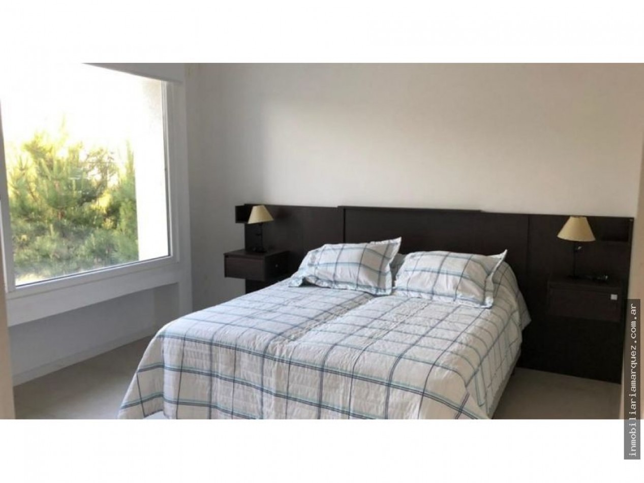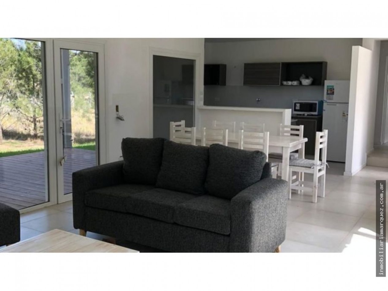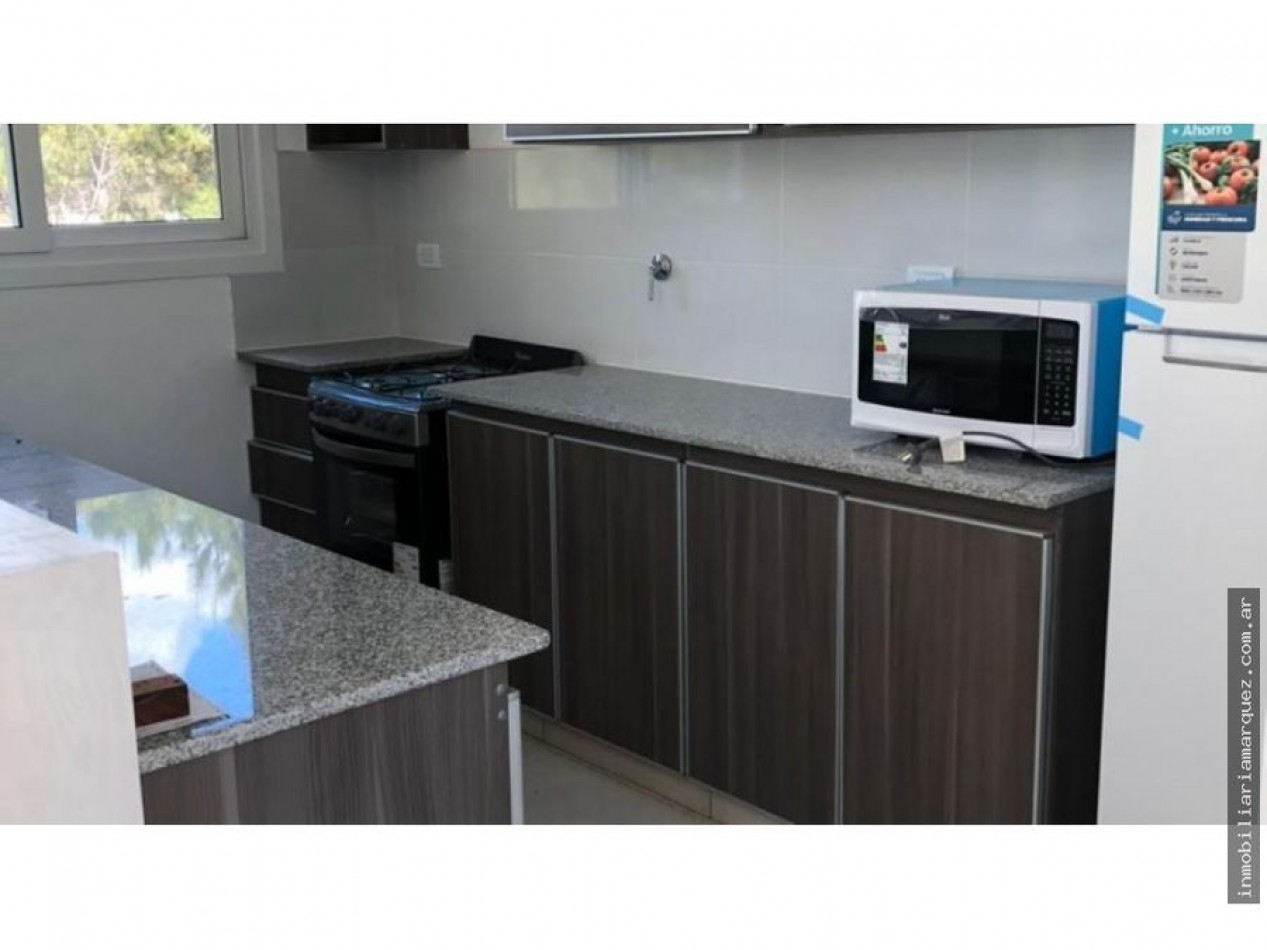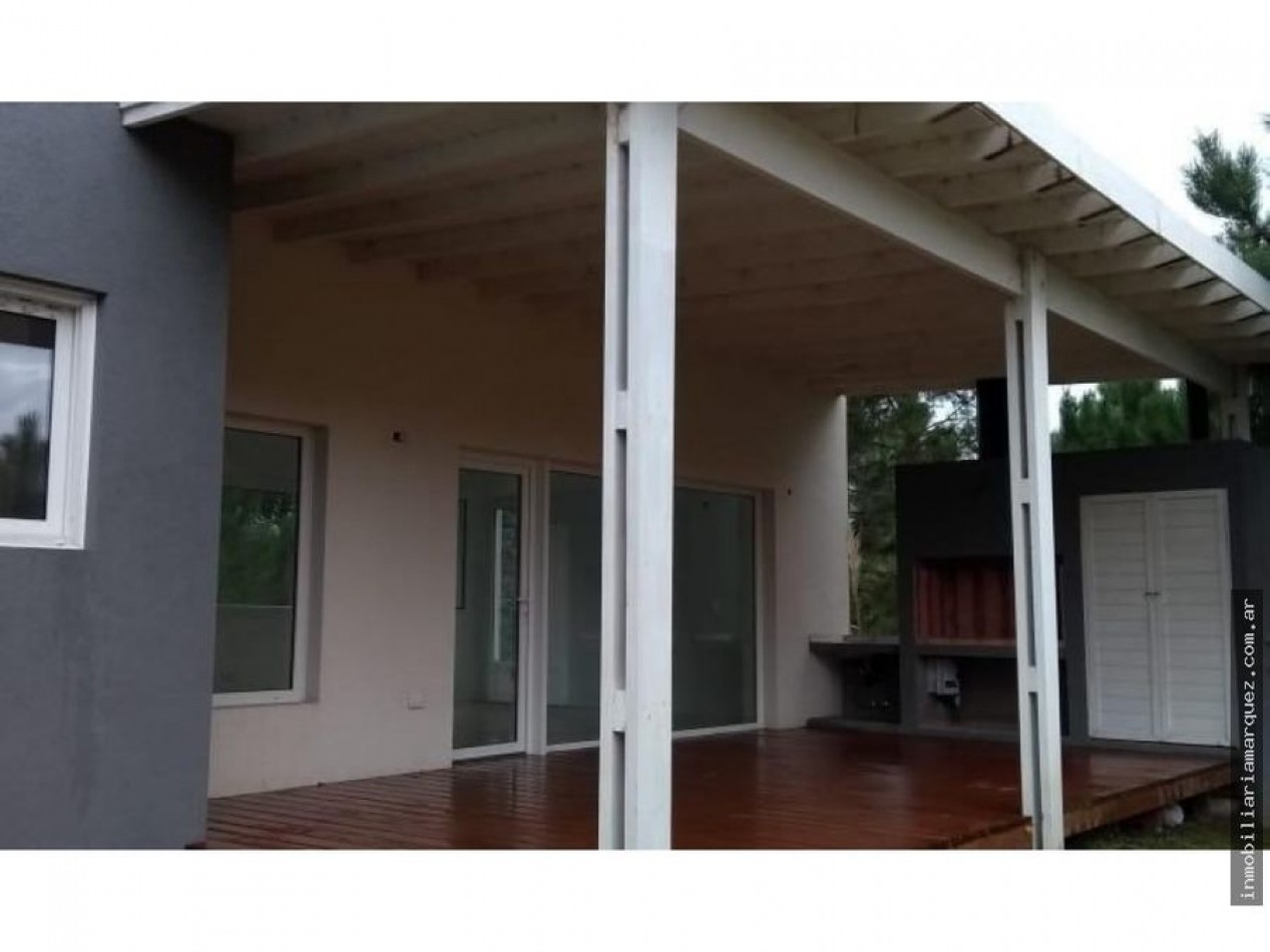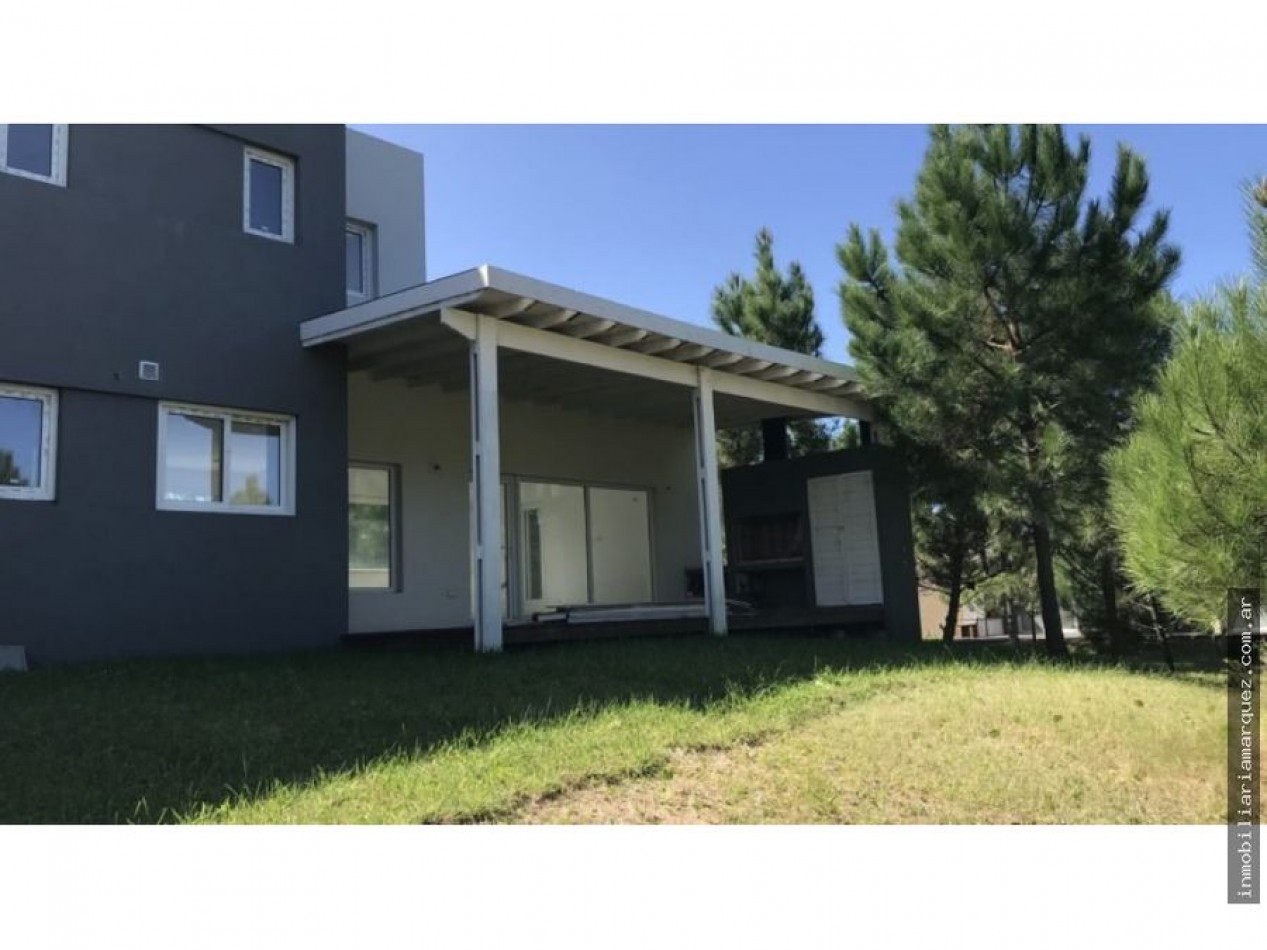 Casa de dos plantas a estrenar en Barrio Golf. Living, Comedor y Cocina integrada por barra. Dos habitaciones en suite. Dos habitación con un baño. Galería cubierta con Parrilla y Jardín.
