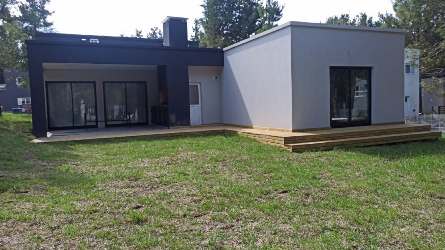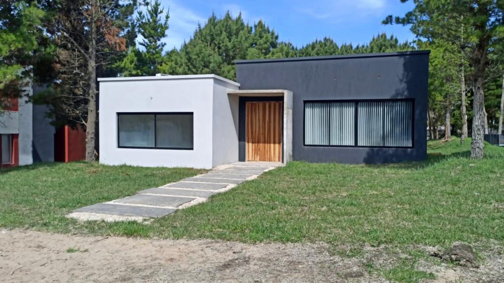 Casa a estrenar, distribuida en una planta, rodeada de bosque sobre calle cul de sac.